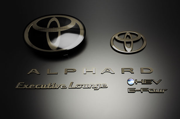 販売内容は、フロント用T-MARK、リヤ用T-MARK,リヤ/ALPHARDエンブレム、リヤ/HEVエンブレム,リヤ/E-Fourエンブレム,リヤ/Executive Loungeエンブレム,