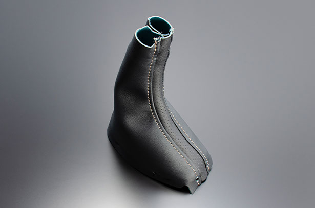 純正形状のレザーシフトブーツです。中央にスポーティなパンチング素材をあしらうモデルとなります。また、左右に入ったステッチも純正近似色にこだわり、上質で高級感のあるインテリアを実現します。当社レザーシフトノブとの相性もとても良いです。
