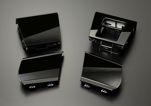 純正ウインドウ スイッチパネルの加工品です。今回の40系アルファード・ヴェルファイアの内装で本当に残念なウインドウ スイッチパネル周りのチープ感を無くすために、純正部品を一つ一つ職人がピアノブラックに仕上げた商品です。貼り付けパネルとは違う、その仕上がりは上質で高級感のあるインテリアを実現します。